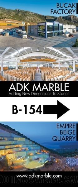 ADK Marble is a marble supplier with two different marble quarries and an ultra-modern factory equipped with the latest technology. Initially operating a travertine quarry in Mersin, the company has earned expertise in quarrying. In addition to block production, they have also moved into the production of slabs and cut-to-size materials, supplying products for projects in various countries such as Spain, Indonesia and Brazil. With the increasing popularity of beige marble, in 2009, they acquired the naming rights to the marble known as 'Empire Beige' in our country, referred to as 'Ottoman Beige' and made a new quarry investment in the Eğirdir region of Isparta.
